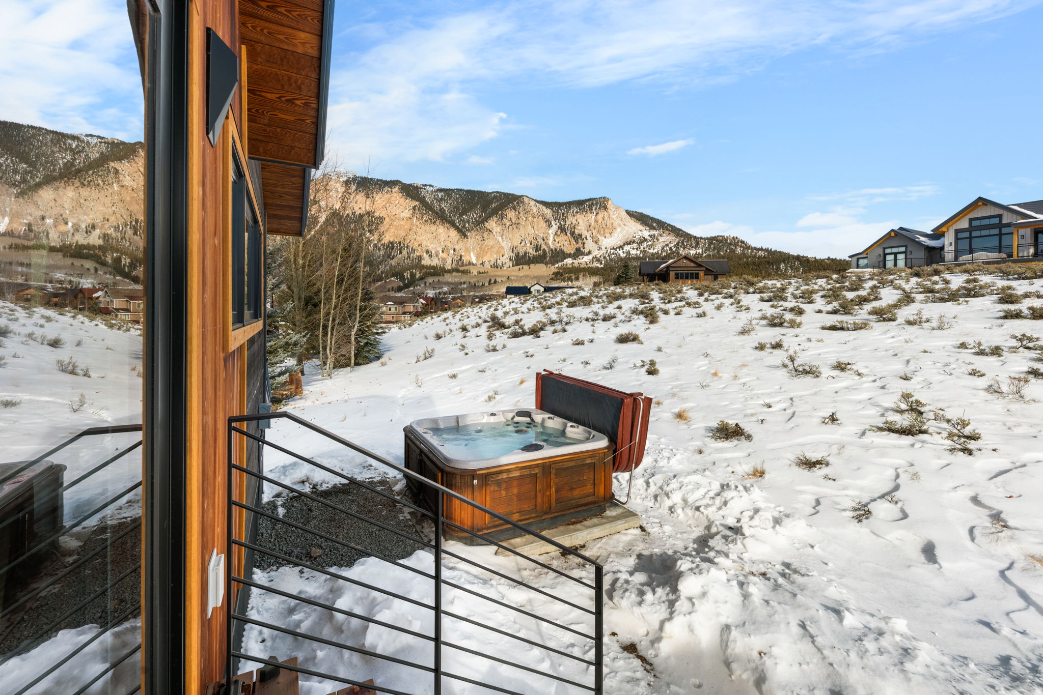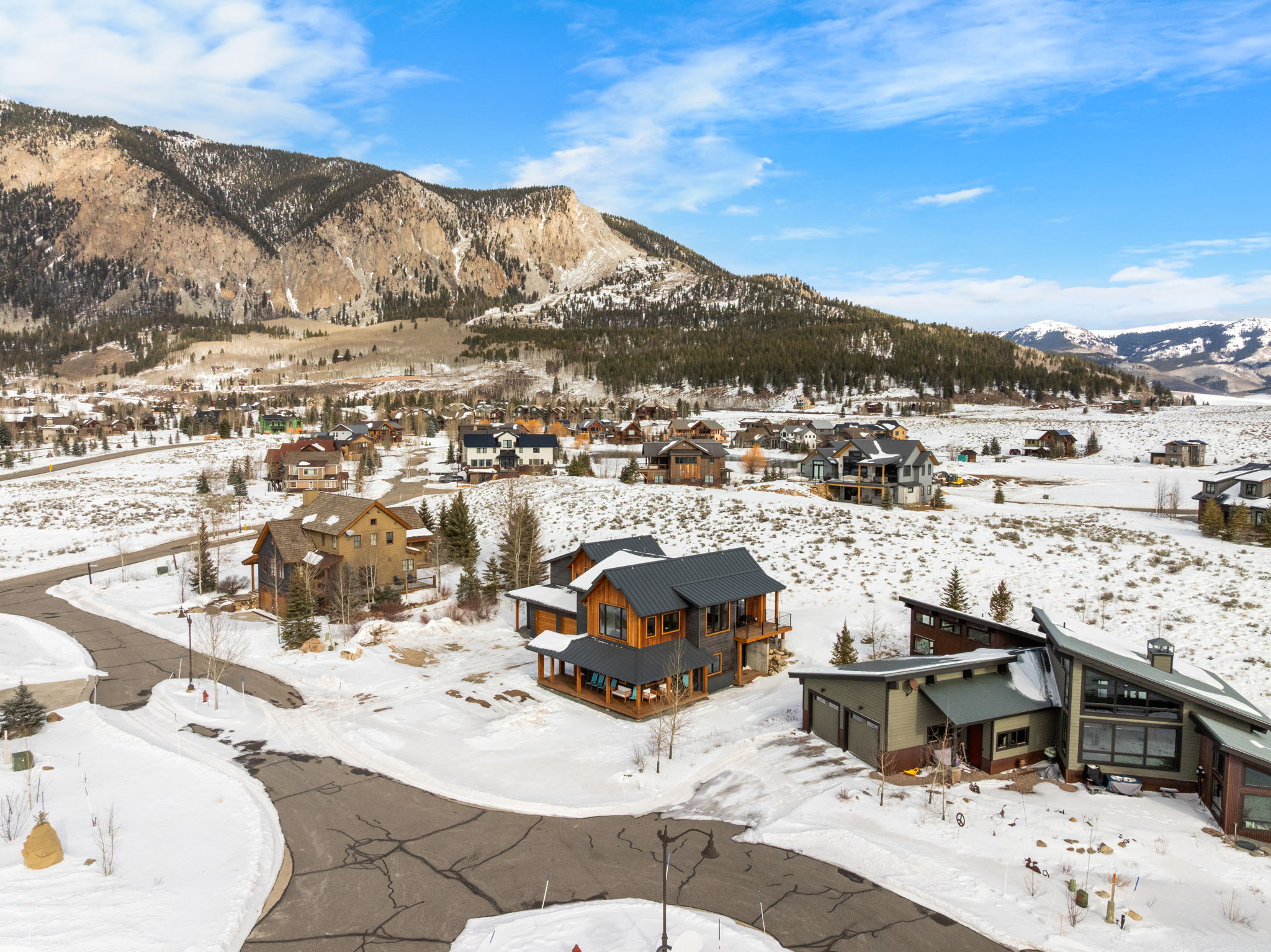 Completed in 2025, this awesome new Crested Butte design-build is located on Lexie Court, a quiet cul-de-sac corner in the highly desirable Larkspur community. The property backs to permanent open space and faces south and west offering dramatic mountain views of Whetstone, Red Lady, Gothic and the Paradise Divide. The home’s living spaces enjoy excellent solar gain and all day Colorado light. Interior highlights include vaulted ceilings, white oak wide plank flooring, forged iron rails, gorgeous doors and trim, designer lighting treatments and beautiful tile, cabinetry, vanities and natural stone tops throughout. The thoughtful floor plan puts the primary suite upstairs along with the office, kitchen, living and dining areas. There are two bedroom suites on the lower level along with a bonus media room that could easily function as a fourth bedroom too! Other highlights include efficient in-floor radiant heat, a large gear room off the oversized 796 SF attached and heated garage, covered decks on both levels, a wrap around covered porch and a hot tub out back. The home features state-of-art A/V, automated blinds, thermostats and LED lighting. There are two EV charging ports in the garage.