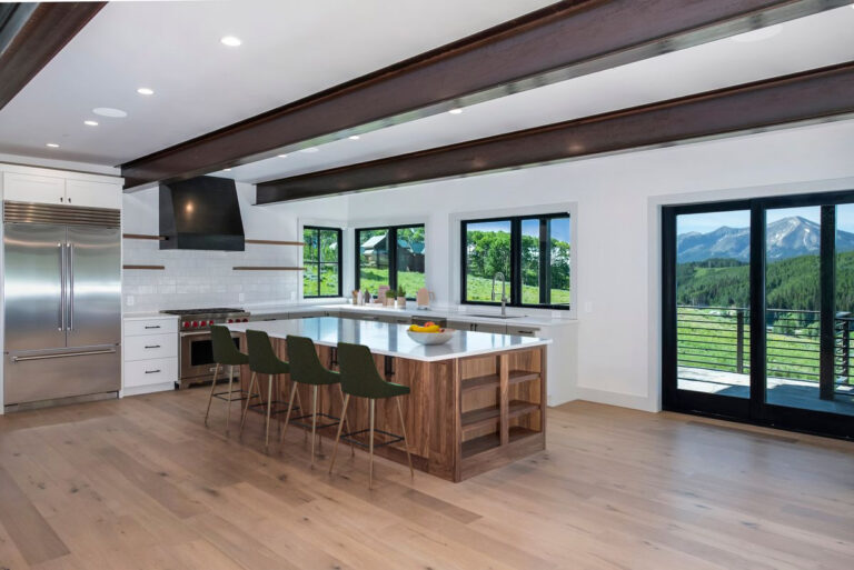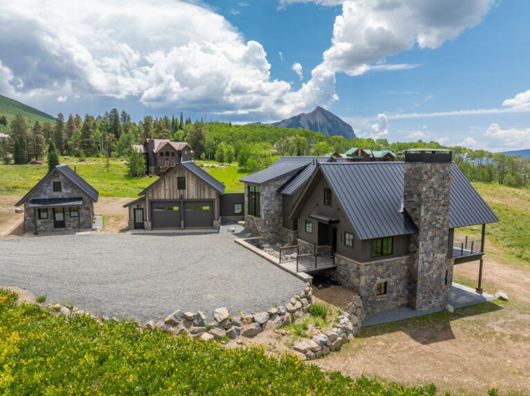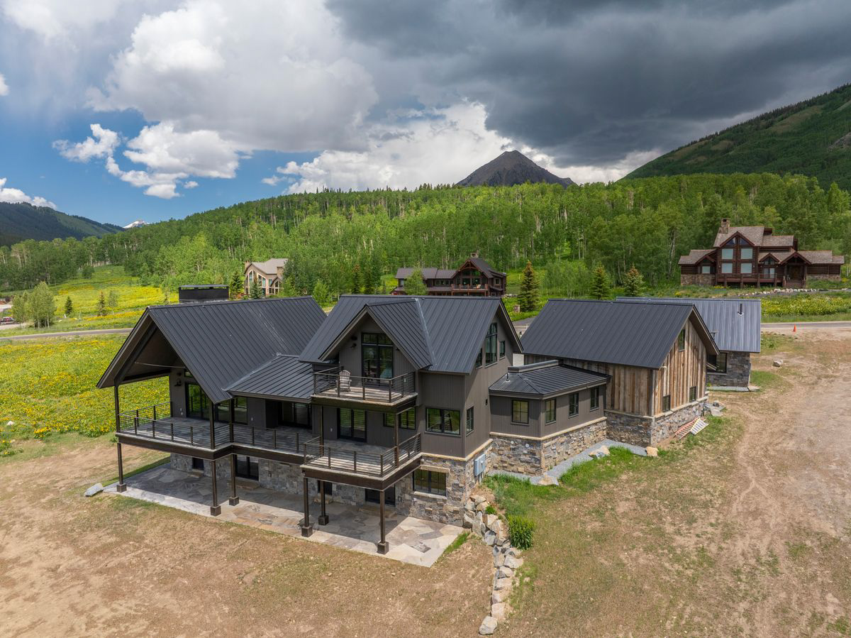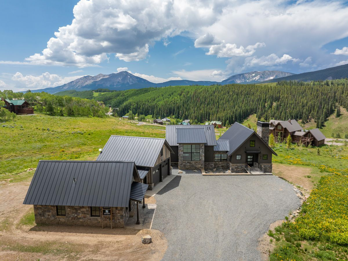 Wow! Completed in 2025, the mountain modern design-build at 470 Meadow Drive will knock the skis off your feet. This offering has it all: A south-facing 1-acre perch at the top of coveted Meridian Lake Meadows with stunner views in every direction and huge covered stone decks and patios framed in beautiful structural steel beams. When is the last time you stood on a stone deck? The main level features spacious dining and living areas anchored by more incredible steel beam work, white oak wide plank floors and an impressive floor-to-ceiling Rumford wood burning fireplace wrapped in a gorgeous steel surround and finished with a rock and steel hearth. Are you kidding me? The entertainer’s kitchen features Wolf-Subzero-Cove appliances, a wet bar, a massive quartz center island, tons of storage and million dollar views from the sink! A dramatic floating oak and steel staircase gets you up to a large primary suite with it’s own deck and down to a lower level living room, three guest quarters and a large laundry room. For those bigger family and friend gatherings the well equipped, separate one-bedroom 540 SF guest house will come in handy. Big vehicles and tons of toys? No problem. The gigantic 816 SF garage offers vaulted ceilings, a big storage loft and doors for tall vehicles. Andrew Hadley Architects and David Gross General Contractor combined forces to create this offering.