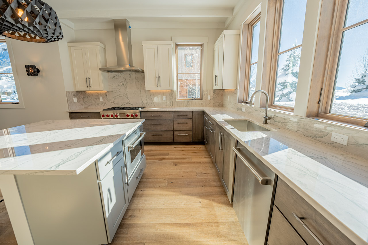 The Town of Crested Butte’s latest custom spec build, the very special mountain modern design at 922 Belleview is recently completed. The location enjoys big time mountain views to the north and south, excellent solar gain and a in-town but peaceful address on this quiet cul-de-sac street at the east edge of town. This 1/4 acre parcel is one of the biggest in Crested Butte creating an opportunity for this 2-story layout with traditional main level spaces including living, kitchen, dining, a bedroom suite, the laundry and a mud room with 3 bedrooms located upstairs including two primary suites. The home features incredible steel beams in the main living areas and a commanding window view of Mt. Crested Butte from the gorgeous fireplace! Interior design highlights include white oak wide-plank flooring and white oak doors throughout, forged steel handrails and balusters in the stairwell, designer lighting, custom cabinetry and a beautiful chef’s kitchen in Wolf-Subzero and Asko. Out back, the big 2-car detached 750 SF garage includes a gear room and the 3rd structure is a cool 319 SF cabin set up with a 1/2 bath and den space.